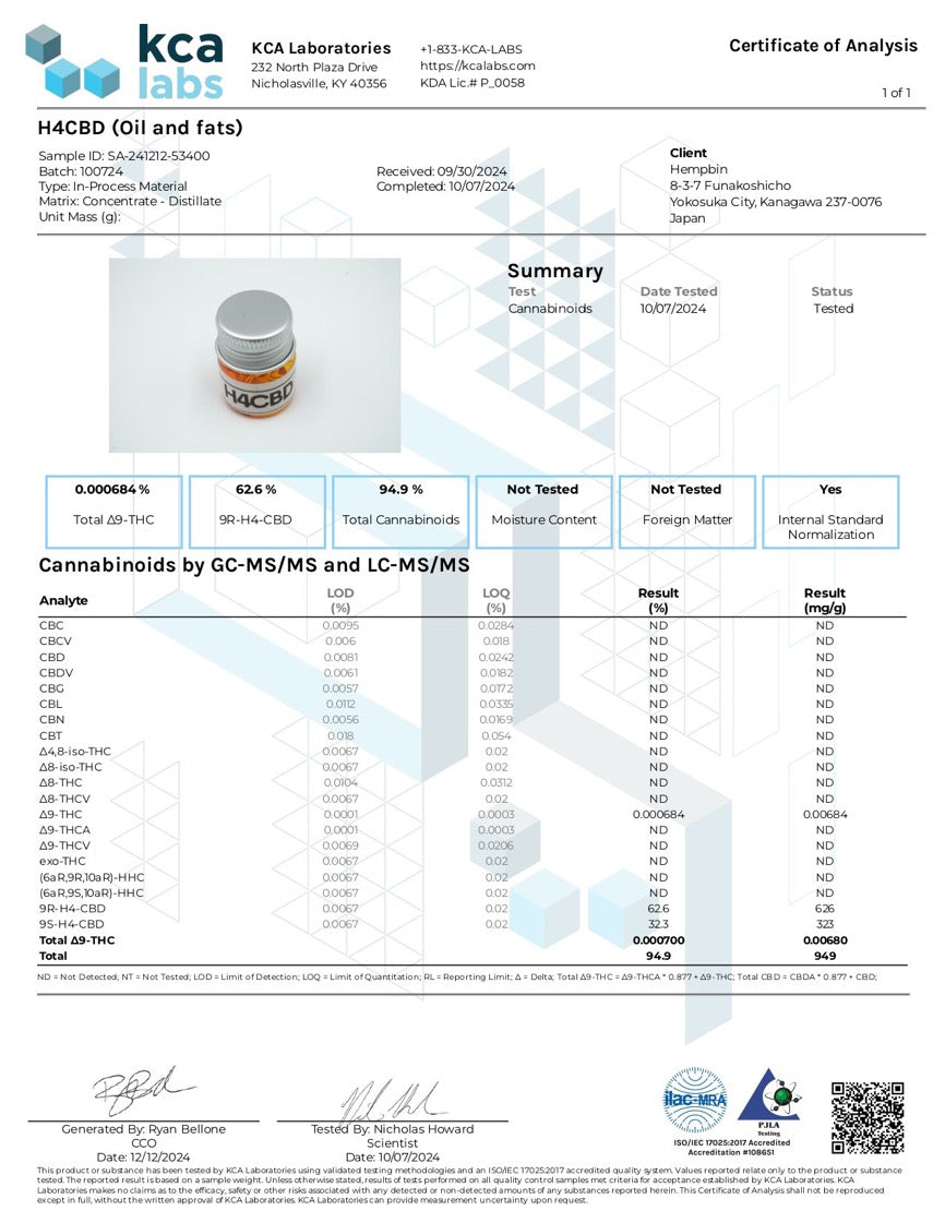 今回のH4CBDハーブは熱加工製品ですので、カンナビノイドを全体の3%に抑えております。